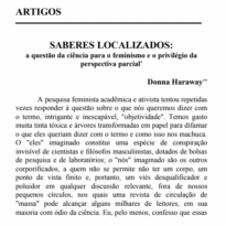 Saberes Localizados: a questão da ciência para o feminismo e o privilégio da perspectiva parcial Voltar Metadados Miniatura Compartilhe TítuloSaberes Localizados: a questão da ciência para o feminismo e o privilégio da perspectiva parcialClassificaçãoCafé Filosófico > Café Filosófico.2024Corpo Donna Haraway Link para Acessohttps://drive.google.com/file/d/1HN__fKaJzcrq9S2P_cYyqF-SXxiRU-J3/view?usp=sharing Continuar navegando O Pacto da Branquitude Esferas da Insurreição: Notas para uma vida não cafetinada Voltar para a lista de itens