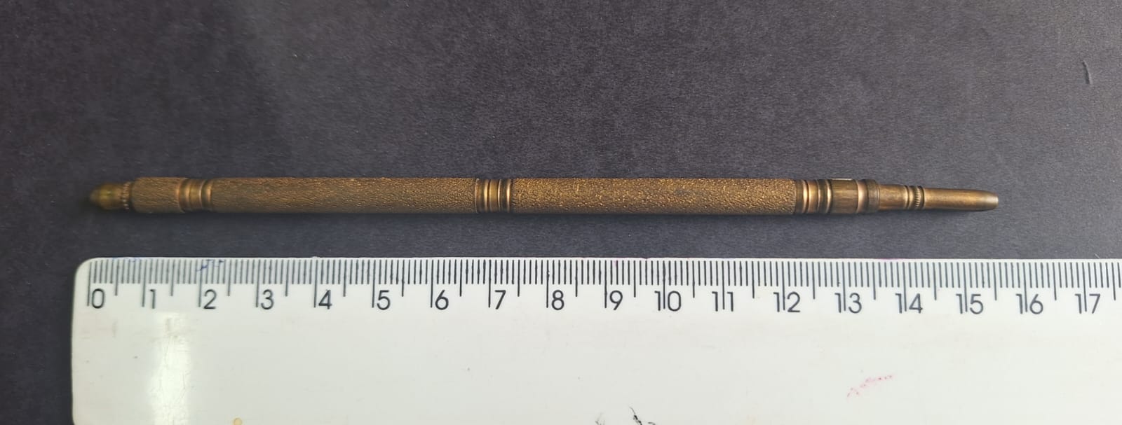 Lapiseira – Suporte para grafite Voltar Documento MGD-01118.6 Baixar Metadados Miniatura Compartilhe DenominaçãoLapiseira - Suporte para grafiteColeçãoVictor BersaniResumo descritivoLapiseira (porta grafite) em metal amarelado (bronze).Número de registroMGD-01118.6Categoria7. Equipamento de comunicaçãoSubcategoria7.1 Equipamento de comunicação escritaData de produção1891DimensõesDiâmetro: 0,6 cm Altura: 15,3 cmMaterial/ TécnicaMetal (bronze)Estado de ConservaçãoRegular Continuar navegando Tinteiro Sinete Voltar para a lista de itens